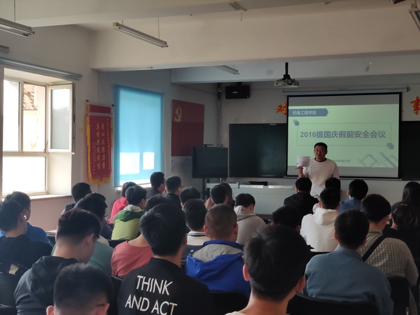 在主楼1462会议室召开毕业生党员安全工作会议,会议由2016级辅导员宫磊老师主持,全体毕业班学生党员参加。