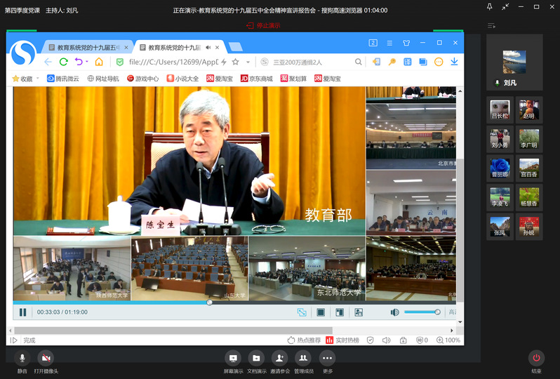 理论学习中心组成员深入学习了习近平总书记在吉林考察时的重要讲话重要指示精神并认真观看了党的十九届五中全会精神中央宣讲团报告视频。教育部部长陈宝生对党的十九届五中全会精神的宣讲导学,深入阐述了《中共中央关于制定国民经济和社会发展第十四个五年规划和2035年远景目标的建议》(以下简称《建议》)产生的过程、结构、丰富内涵,围绕新形势、新阶段、新理念、新格局、新目标、新要求等六个方面进行了充分解读。报告深入浅出、内容丰富,有助于全面系统理解《建议》。