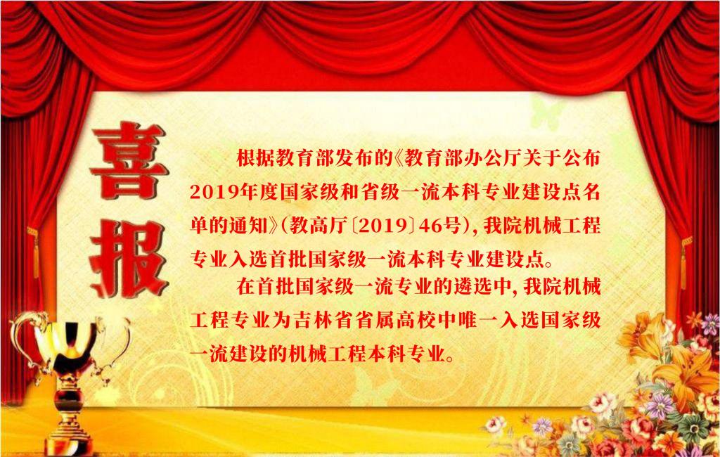 在首批国家级一流专业的遴选中,我院机械工程专业为吉林省省属高校中唯一入选国家级一流建设的机械工程本科专业。