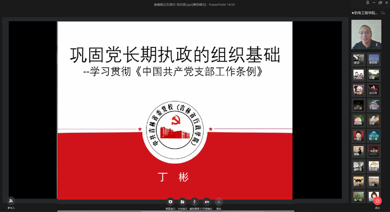 报告会上,丁彬教授从新时代党支部建设之重、建设之规和建设之为三个方面阐述了新时代下为什么要加强党支部建设、如何加强党支部建设和党支部在新时代应起到的作用,高屋建瓴,提纲挈领,为我们上了丰富生动的一课。