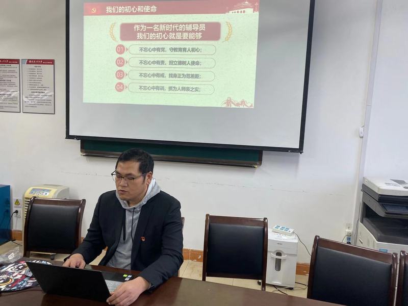 王潇猇根据读书心得,结合“不忘初心 牢记使命”主题教育,做了题为“不忘教师初心 牢记育人使命”读书分享,他从我们的初心和使命、开展主题教育的要求、辅导员如何做到不忘初心牢记使命和不忘初心,做新时代有作为的辅导员四个方面进行感悟交流,他表示作为新时代的辅导员,承担着育人的神圣历史使命和责任。应不忘初心,牢记使命,努力争做新时代的深受学生欢迎的辅导员,一名合格的人民教师。用习近平新时代中国特色社会主义思想武装头脑、指导工作、推动实践。