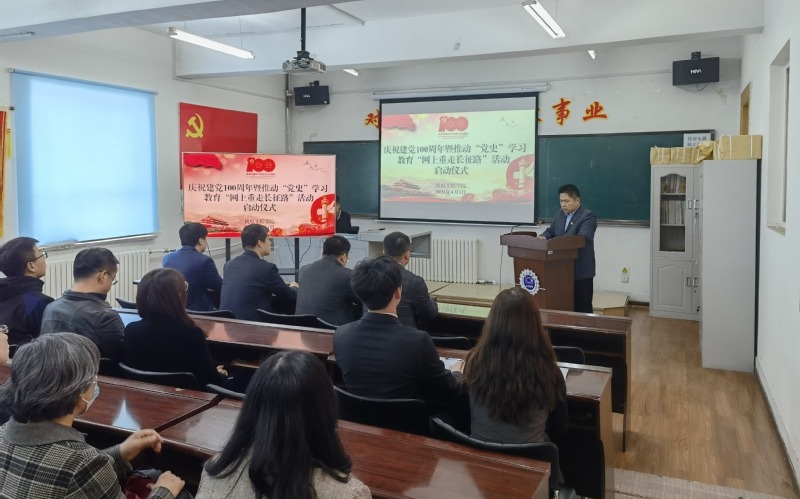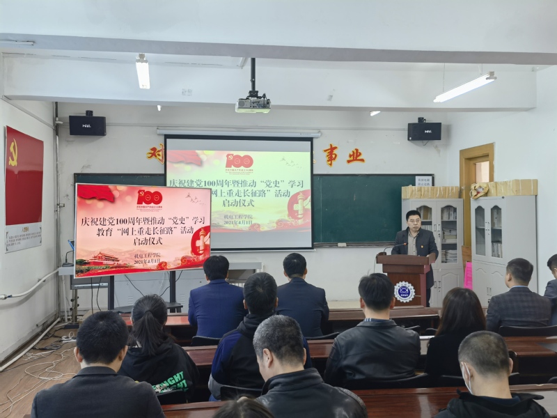 党委书记李奇涵宣读了活动方案,并强调各党支部、团支部要深入学习领会习近平总书记关于学习党史的重要论述和王忠书记在学校党史教育动员大会上的讲话,紧紧围绕学懂弄通党的创新理论,坚持学习党史与学习新中国史、改革开放史、社会主义发展史相贯通,做到学史明理、学史增信、学史崇德、学史力行,引导广大师生增强“四个意识”、坚定“四个自信”、做到“两个维护”,不断提高政治判断力、政治领悟力、政治执行力,守正创新抓机遇,锐意进取开新局,为全面建设社会主义现代化国家、实现中华民族伟大复兴中国梦而不懈奋斗,为党的100岁生日献礼!