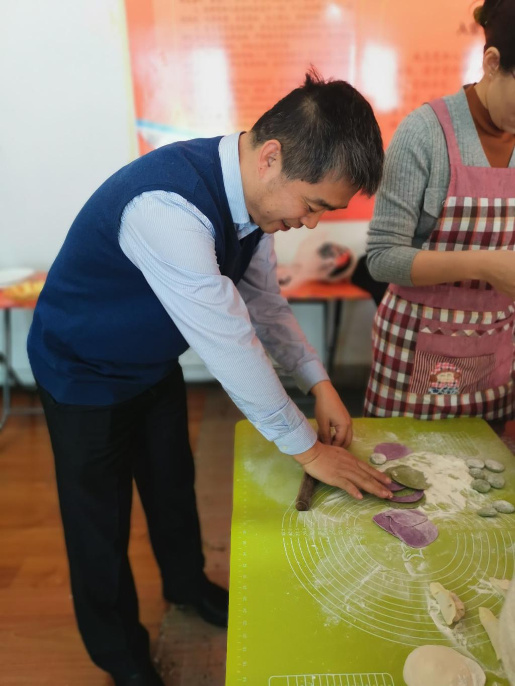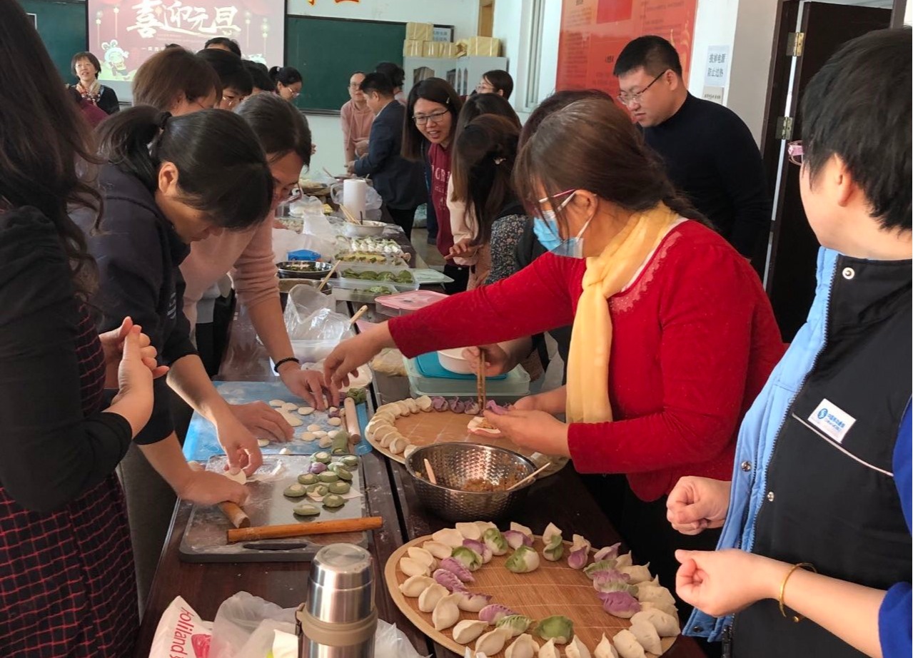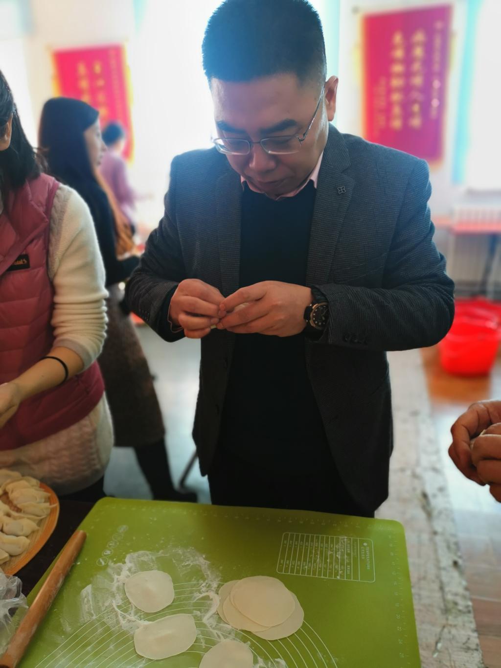 党委书记李奇涵、院长岳晓峰、工会主席黄向东的带领下,共同合作开始包饺子,大家热情饱满大显身手,擀面、摊平、包馅、捏形,一气呵成,不一会儿就包好了几盆饺子,除了传统的饺子之外,各种形状、样式、颜色各异的饺子也是层出不穷。当热腾腾的饺子出锅时,老师们共同享用亲手包出的饺子,配着带来的其它美食,品尝着自己的辛勤的成果,脸上洋溢出暖暖的笑容。通过一起包饺子活动,增进了老师之间的感情和团队意识,多位新进教师都是第一次体验集体包饺子,颇感兴奋,彼此交流各式各样的饺子和各种美食佳肴的制作经验,充分展现了教职工的动手能力,整个愉快活动场面充满了和谐的气氛。