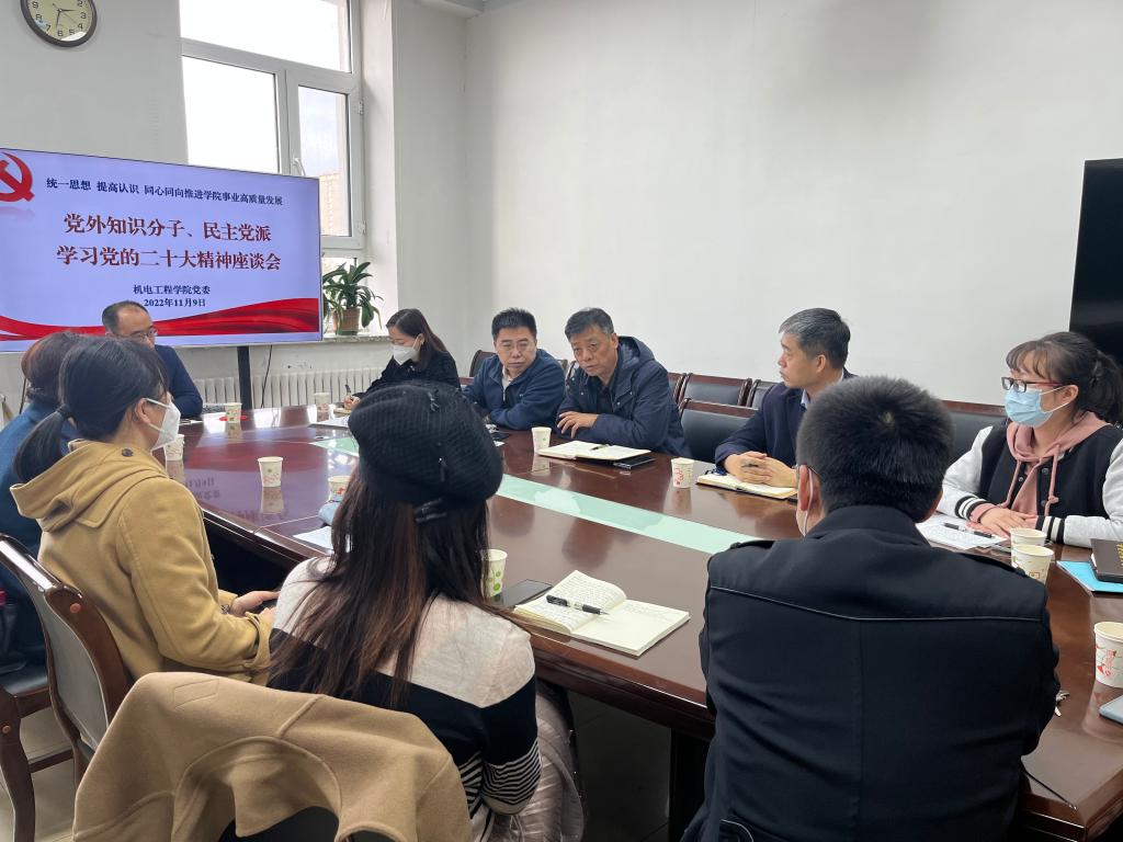 党委书记李奇涵、院长岳晓峰、党外知识分子、民主党派教师代表参加了会议。会上,大家交流学习心得、畅谈工作打算、提出真知灼见,进一步统一了思想,凝聚了共识,会议由李奇涵主持。