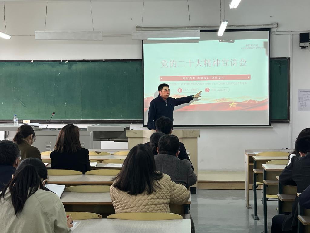 党委书记李奇涵作为宣讲人与全体教师对党的二十大精神进行了集中学习。