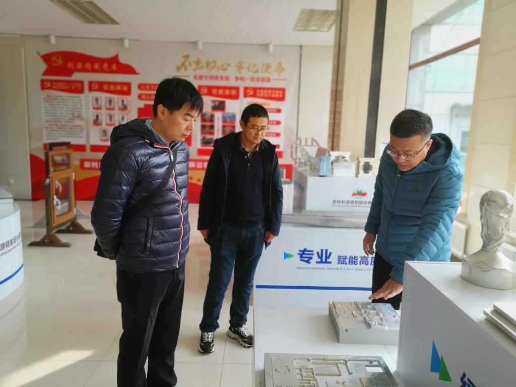 在吉林利源精制股份有限公司研发院范金龙院长的陪同下,郝兆朋一行参观了企业展厅,详细了解了企业发展历程、建设规模、业务领域、产品研发应用等情况。