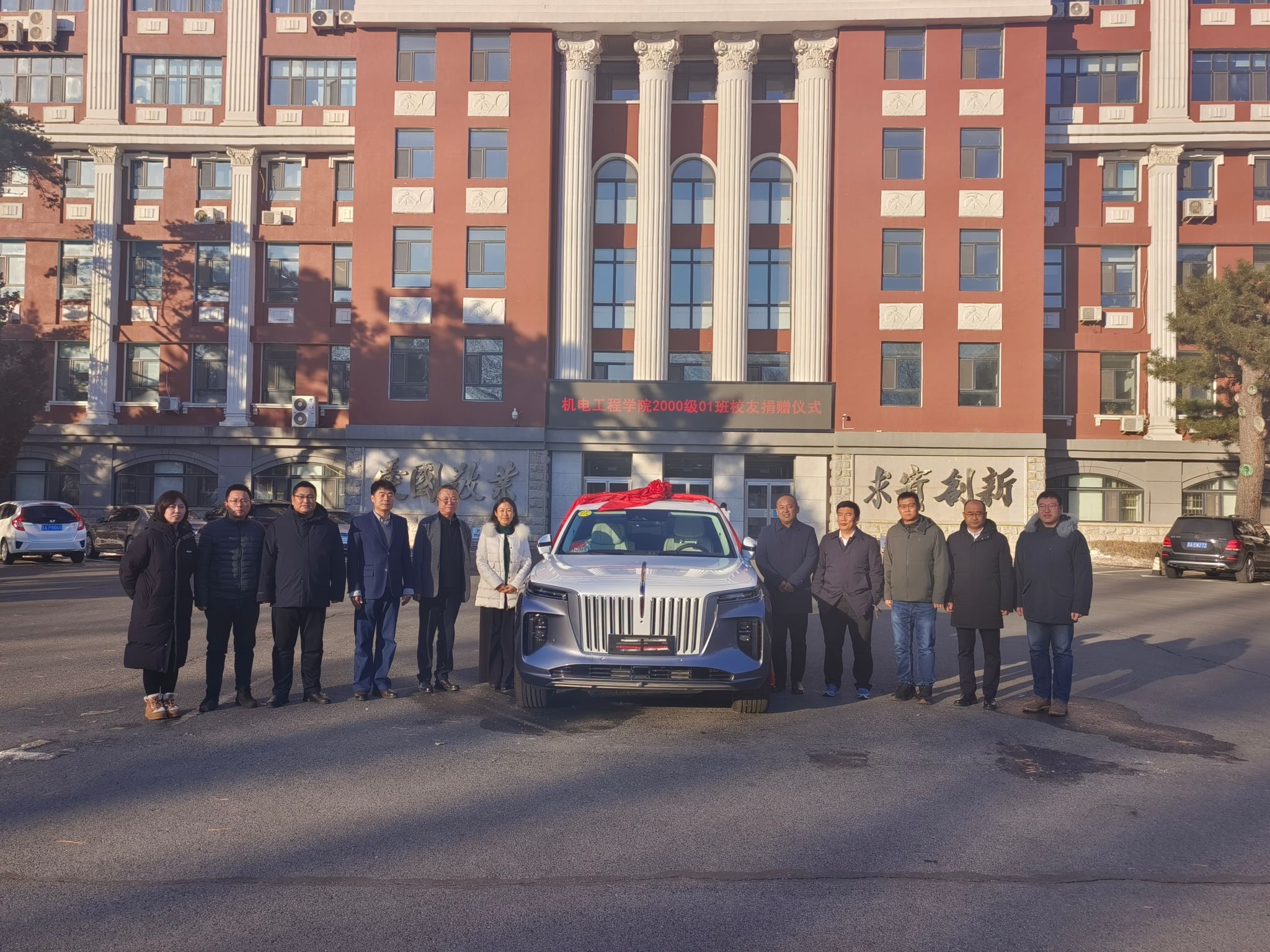 捐赠仪式最后,在场全体嘉宾来到主楼前共同为赠送车辆揭幕,并合影留念。