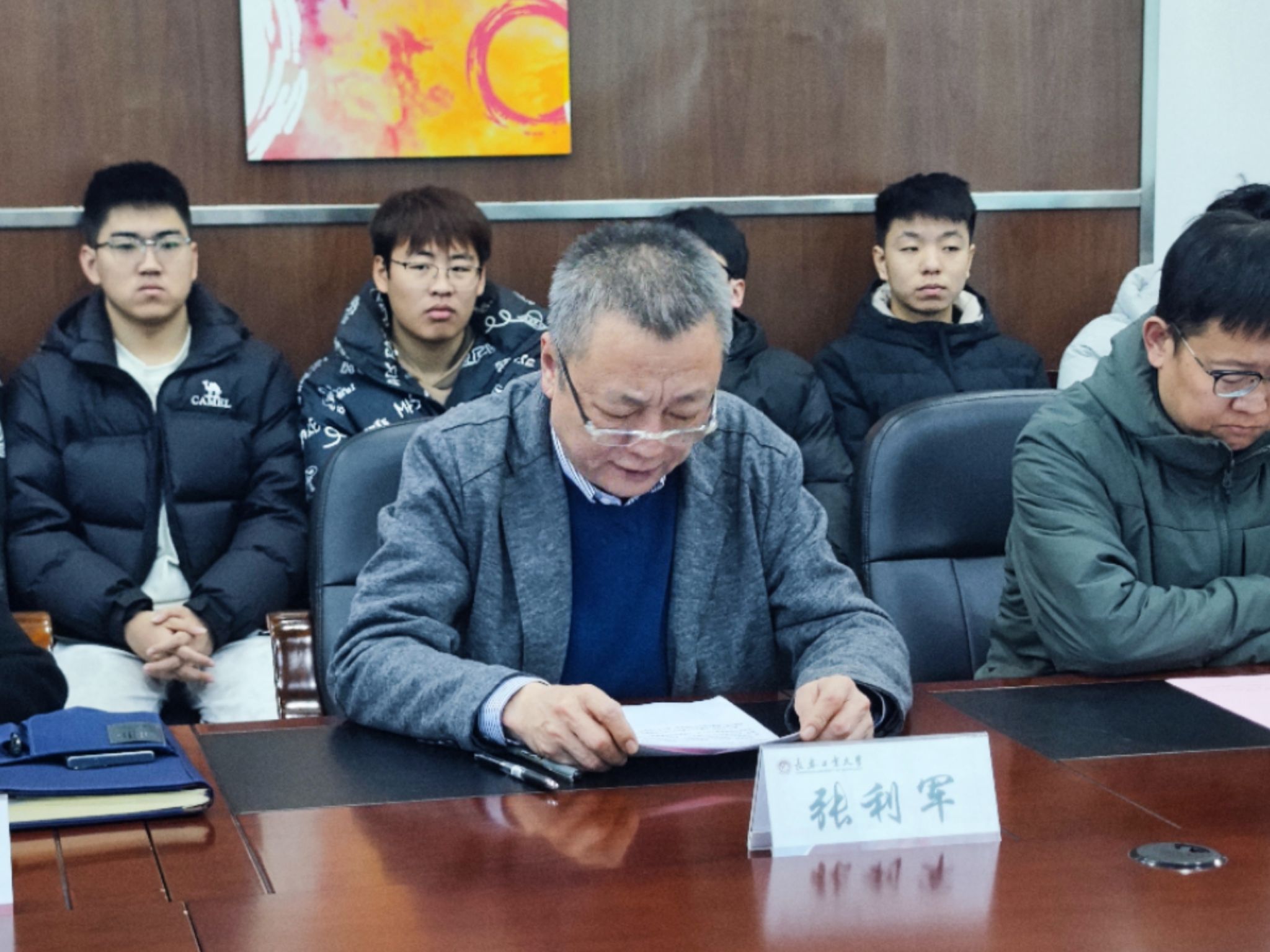 党委书记张利军、院长郝兆朋、党委副书记杨楠、副院长谷东伟、机械工程系主任高嵩、智能制造工程系主任谷岩、团委书记张龙娇。