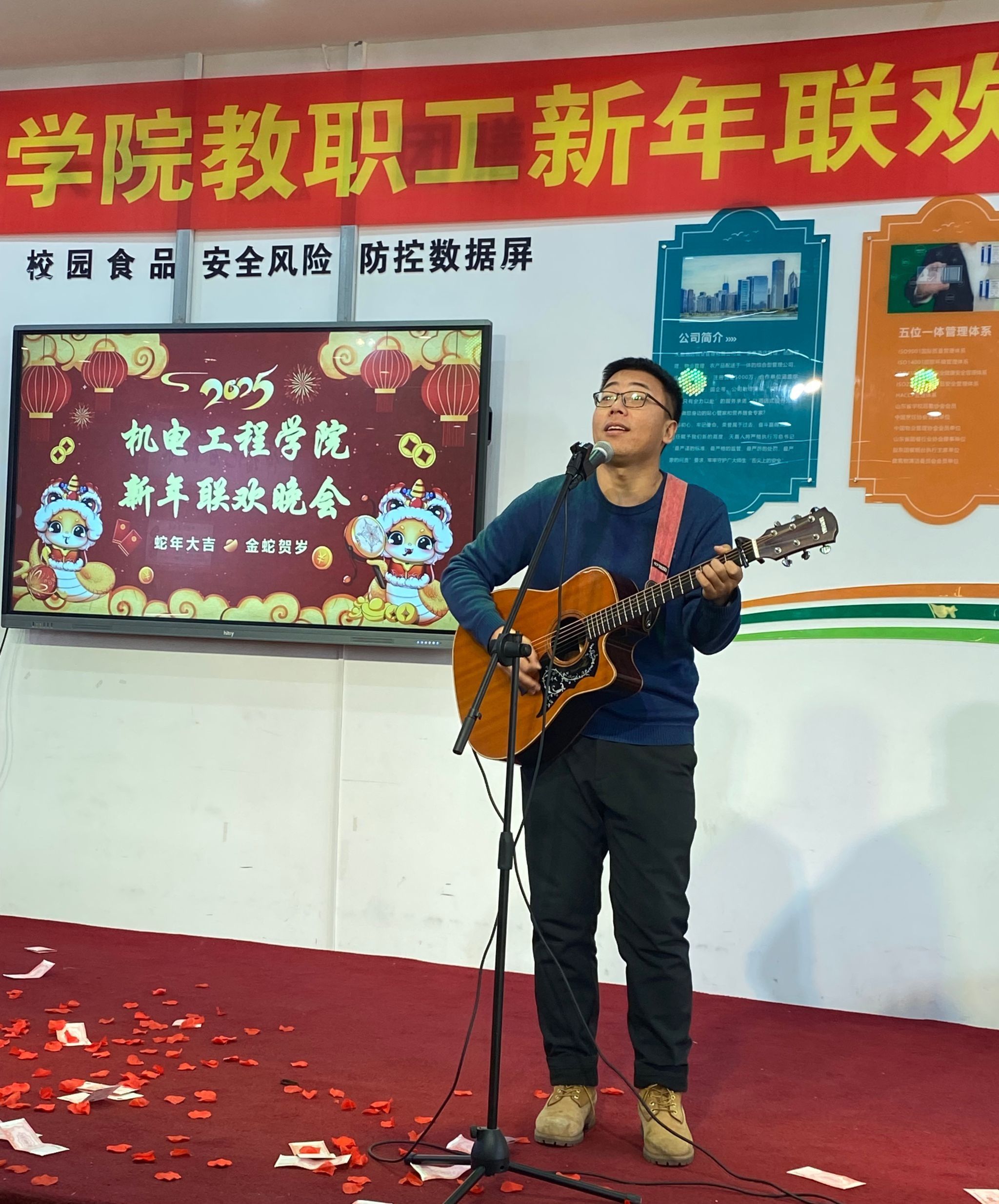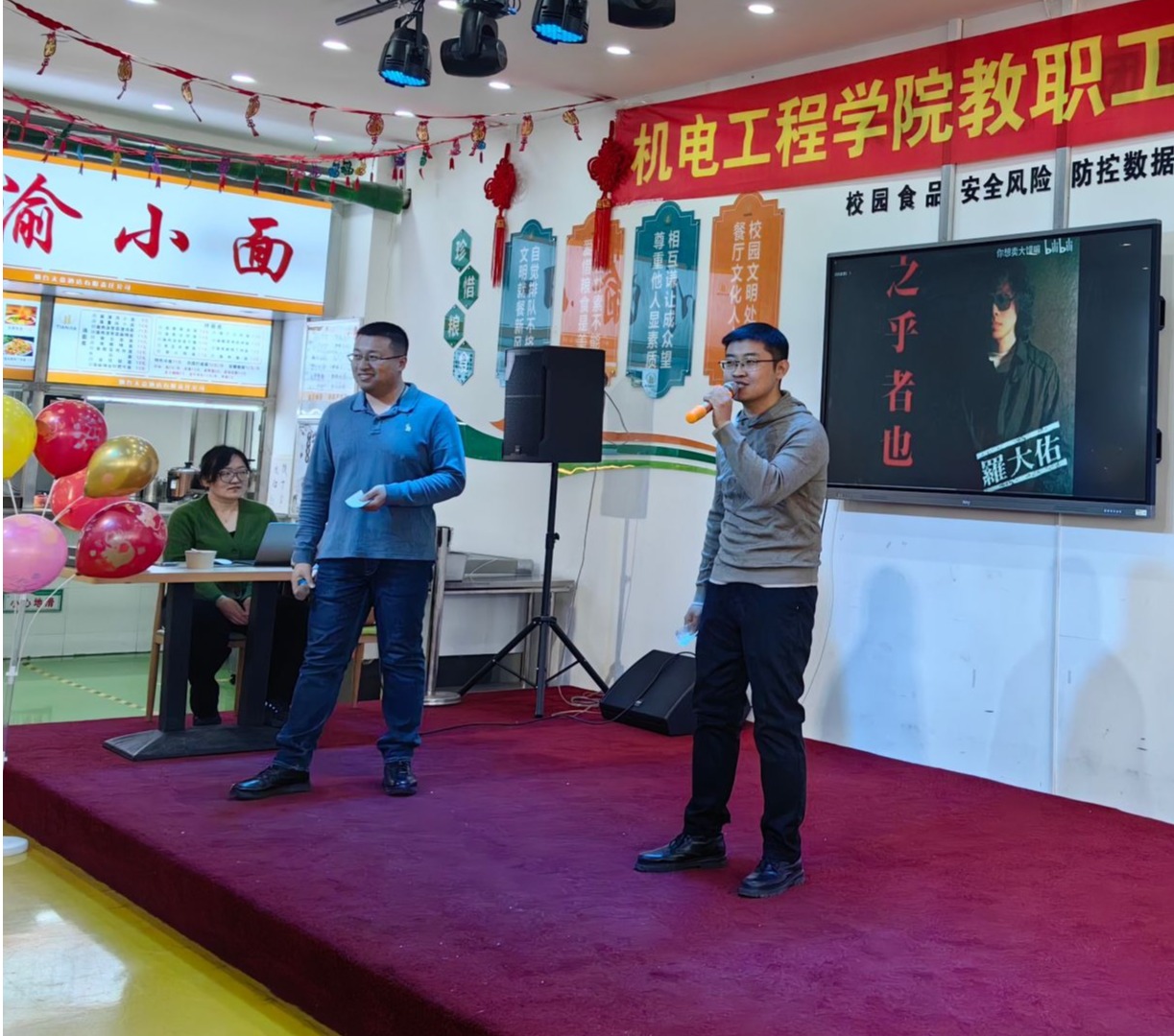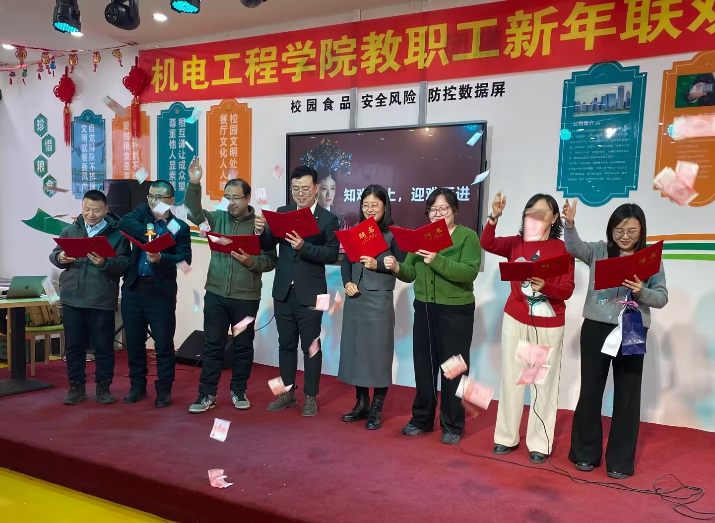 2025教职工新年联欢晚会在南湖校区食堂三楼成功举办。副校长胡刃峰、党委统战部部长郭立祥、国际交流与合作处处长李奇涵、工会主席任红莅临了晚会现场,和全院教师欢聚一堂,喜迎新春。
