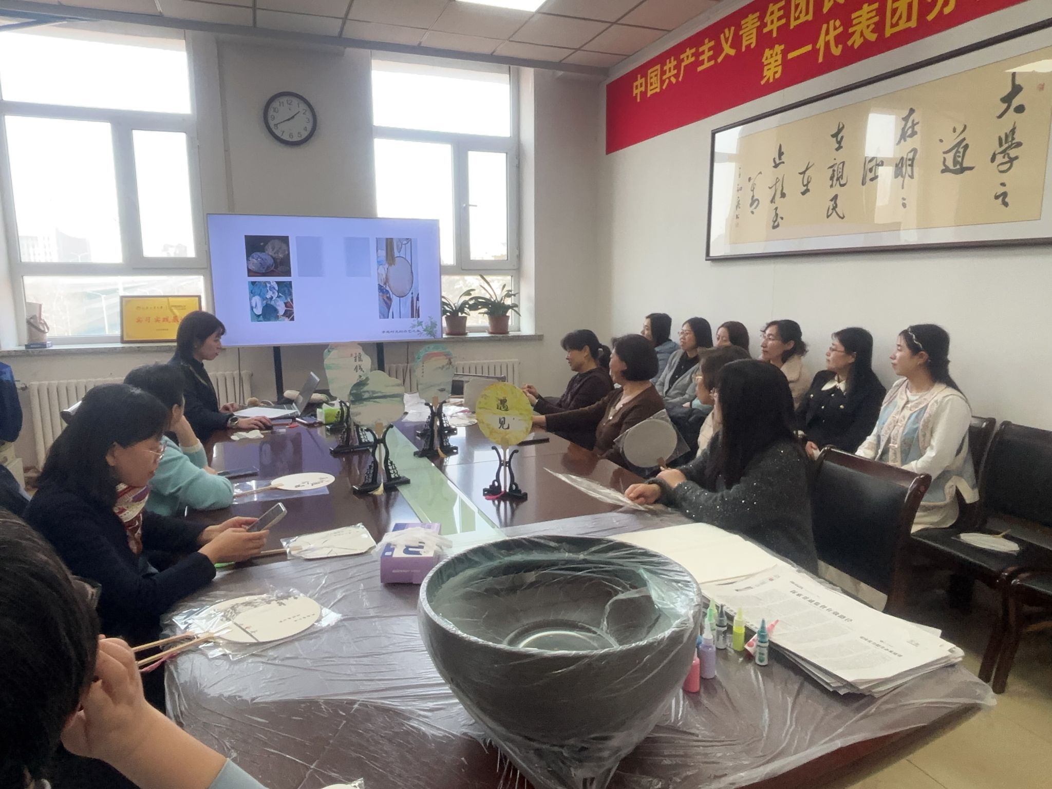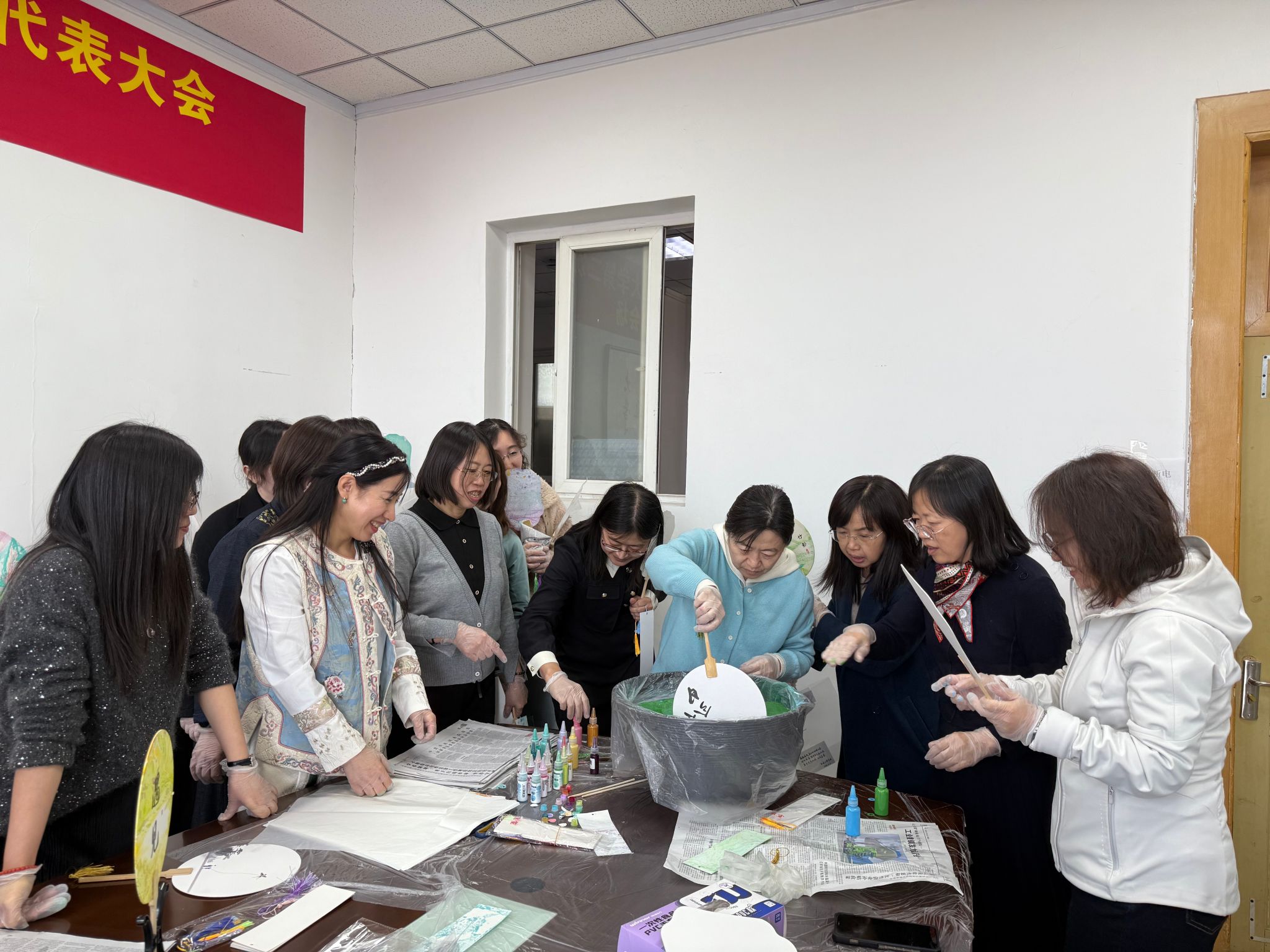 女教工们踊跃参与了活动。此次活动旨在通过漆扇这一传统工艺,展现女教职工们的艺术才华与巾帼风采,为大家带来一次难忘的文化体验。