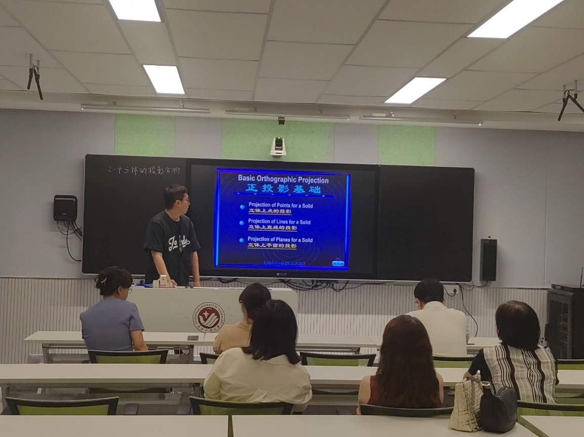 此次试讲考核聚焦于工程制图课程,在试讲过程中,三位老师各展风采。杜永盛针对工程制图第二章正投影法基础中的立体上点的投影进行了讲解,主要讲解点的投影、立体上两点的相对位置以及充盈点的判别与标注。通过讲解点的投影从而引出后面直线的投影和面的投影的相关内容。