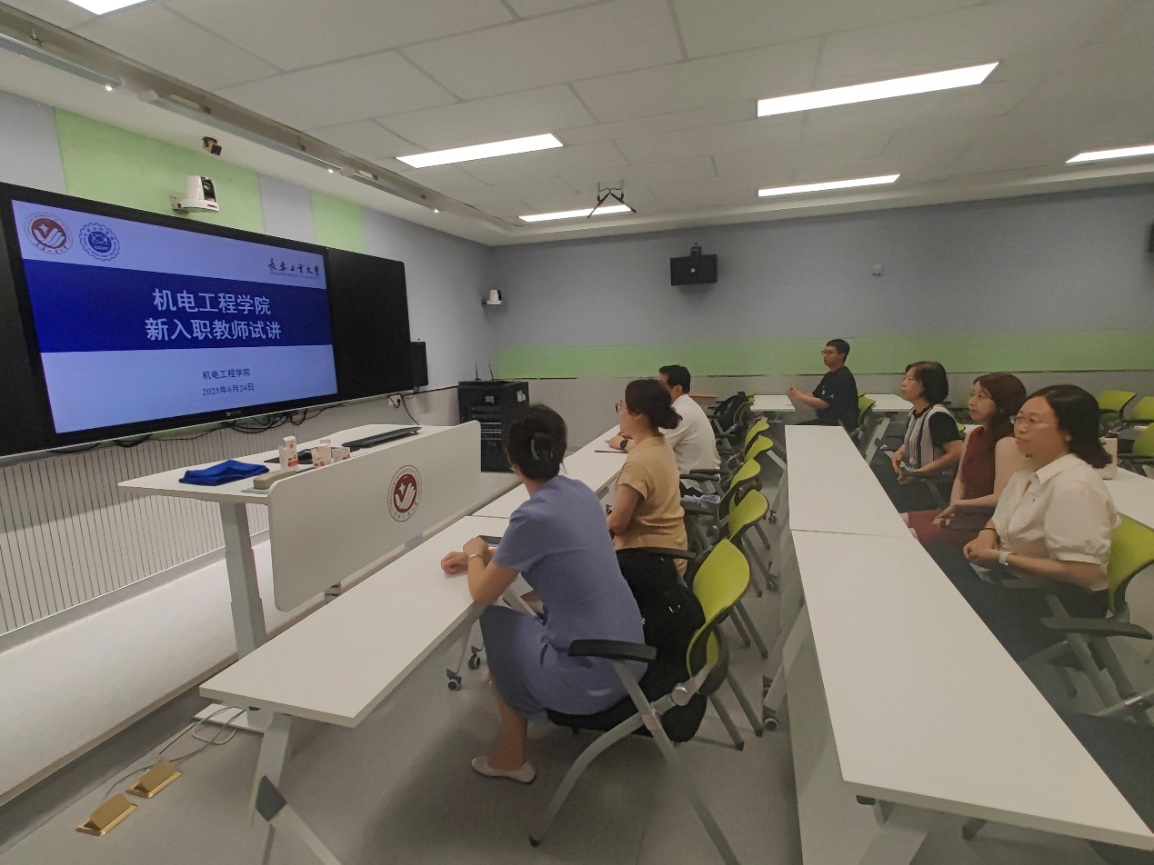 督导刘凡、李静,机械基础教学中心主任刘小勇,机械工程系副主任尹晓静,以及智能制造系朱娟老师作为评委参加。新入职教师杜永盛、田济语、王小瑞三位老师参与试讲。
