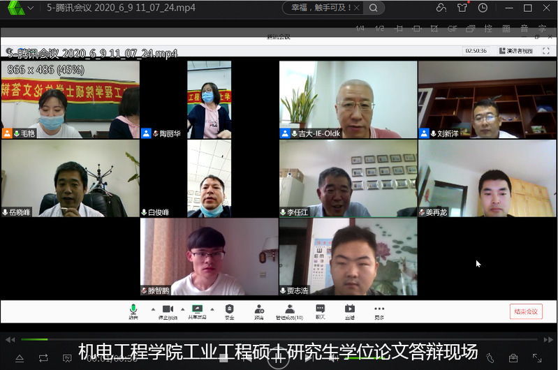 本网讯(通讯员赵巍)根据《教育部应对新型冠状病毒肺炎疫情工作领导小组办公室关于做好2020年上半年毕业研究生学位授予相关工作的通知》(教研厅函〔2020〕1号)要求及《长春工业大学疫情防控期间研究生线上答辩申请流程及要求》,我院于2020年6月9日至14日圆满完成博士、硕士学位论文线上答辩会。