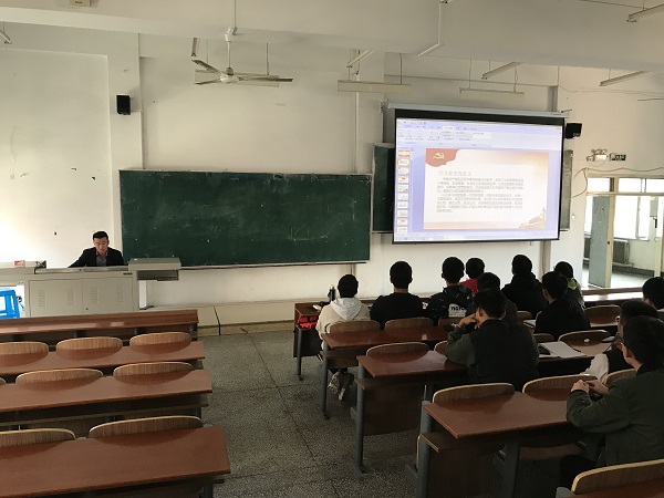 2018级辅导员赵宝贵老师在第二阶梯教室,为全院入党积极分子上了题目为《中国共产党党史及成就展》的主题党课。