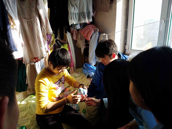 春雨志愿者协会携带着浓浓的爱再次来到了患有脑瘫的李歌宁家中。