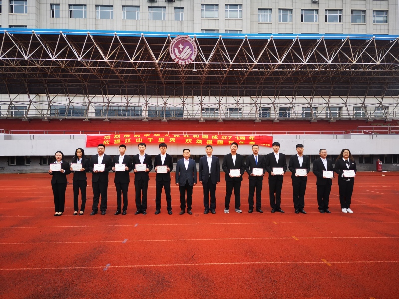 班子成员,辅导员和全体学生共同为祖国71周岁华诞献礼。