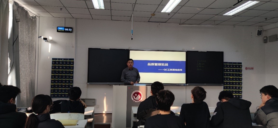 陈老师介绍了商用车底盘,讲解了商用车辆自动紧急制动系统性能要求及实验方法,汽车用空气压缩机技术要求等国家标准和行业标准,让学生了解行业前沿技术,生产流程与管理规范,全面提升专业素养,解决问题的实际能力。